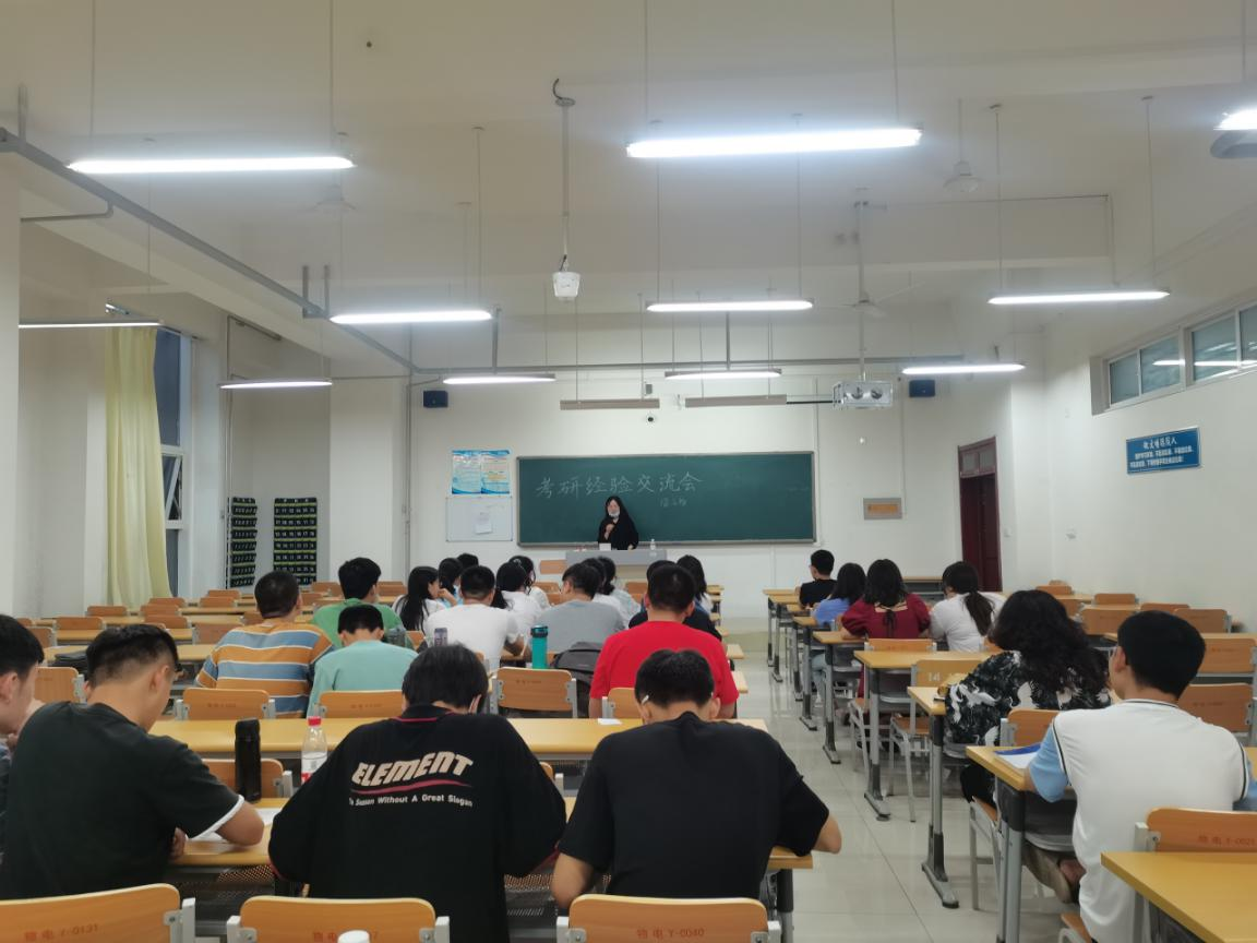 为使同学们为接下来的考研做好准备,对考研做好相关的前期了解,解决预备考研同学学习过程中遇到的各种问题,促进同学们的学习热情和考研激情,并对同学们可能或已经遇到的一些问题作出解答。太阳成集团tyc234cc下载于6月8日晚上,在明理楼0126举办各专业考研经验交流会,通过考研成功的17级学子分享他们的考研经验,为预备考研的同学指点迷津。此次交流会邀请我院17级考研成功学子主讲,18级学生参加。