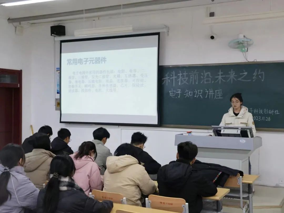 为了帮助同学们了解常用元器件和仪器的原理与功能,进一步培养同学们科技创新精神、提高自身综合素质,提升同学们在电子科技领域的创新能力和实践技能,德州学院电子科技创新社团于11月28日举办了电子元件功能知识讲座。